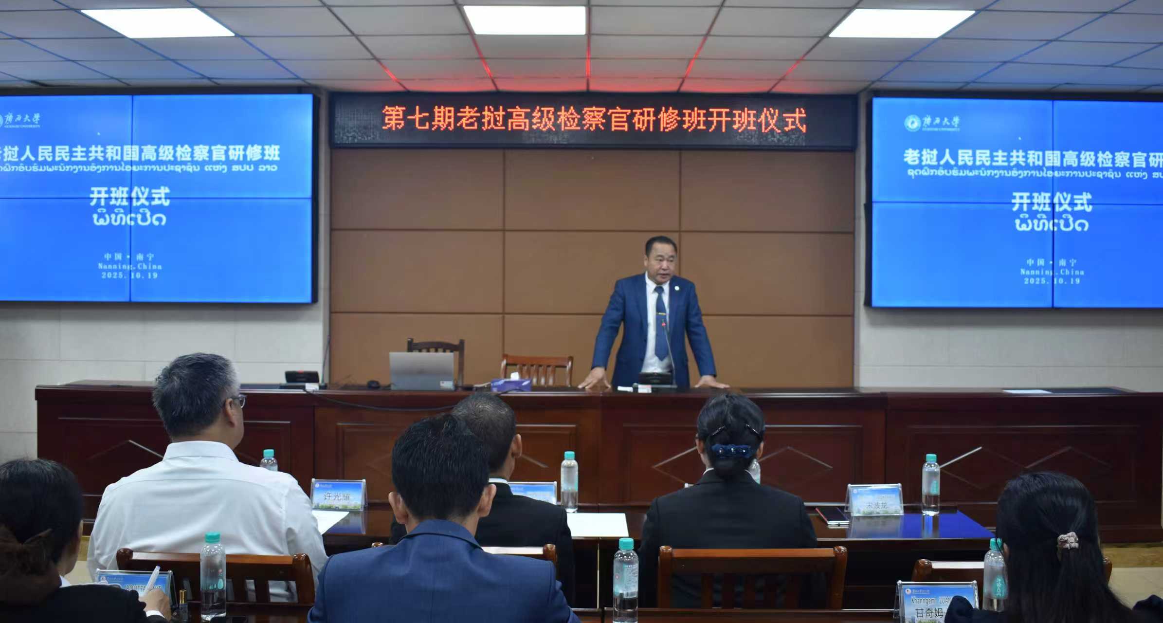 本期研修班于10月19日开班,由老挝最高人民检察院执法监察局副局长凯马尼・占泰提(Ketmany CHANTAITHIP)担任研修团团长,16名学员均为老挝最高人民检察院及地方检察院的检察官。