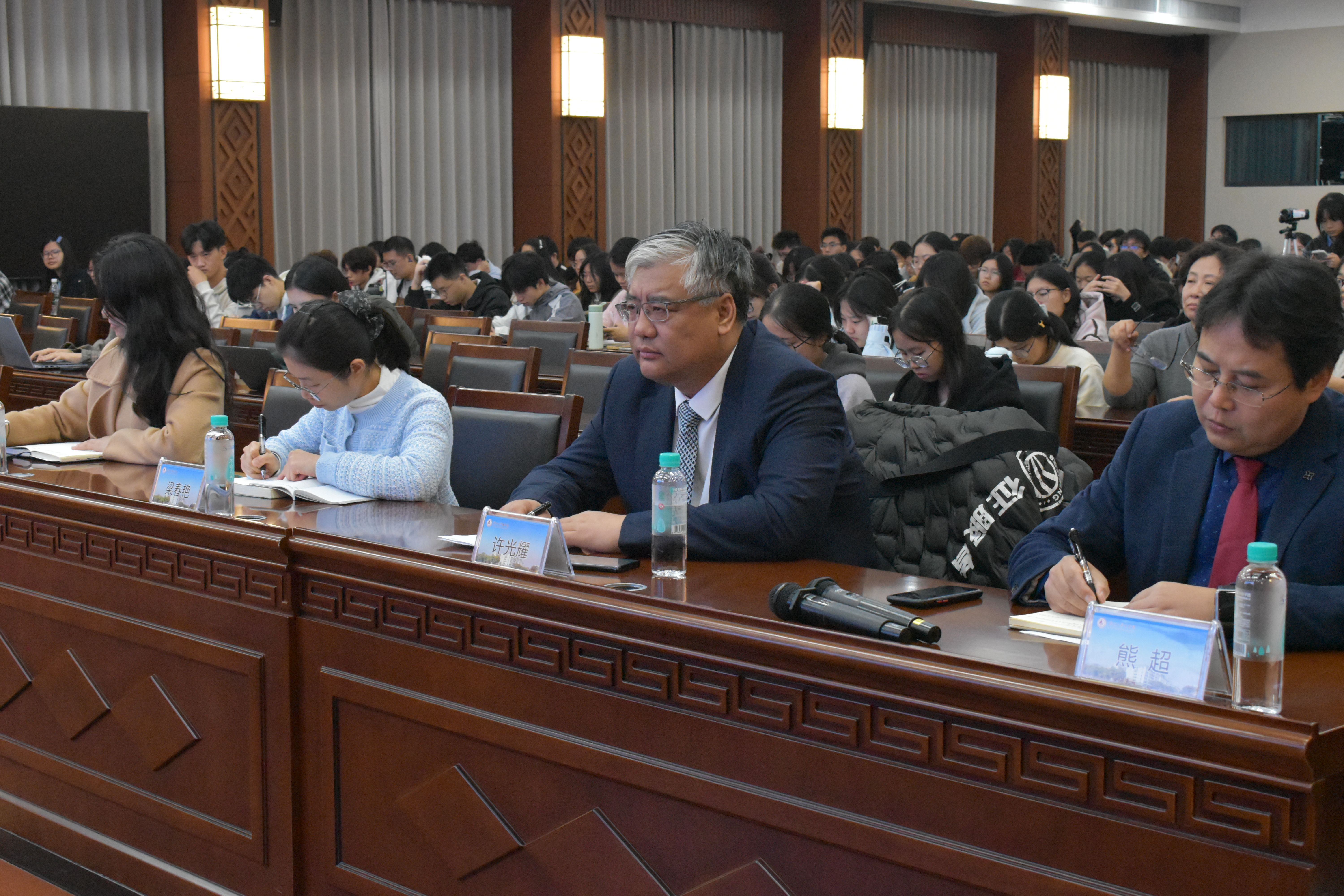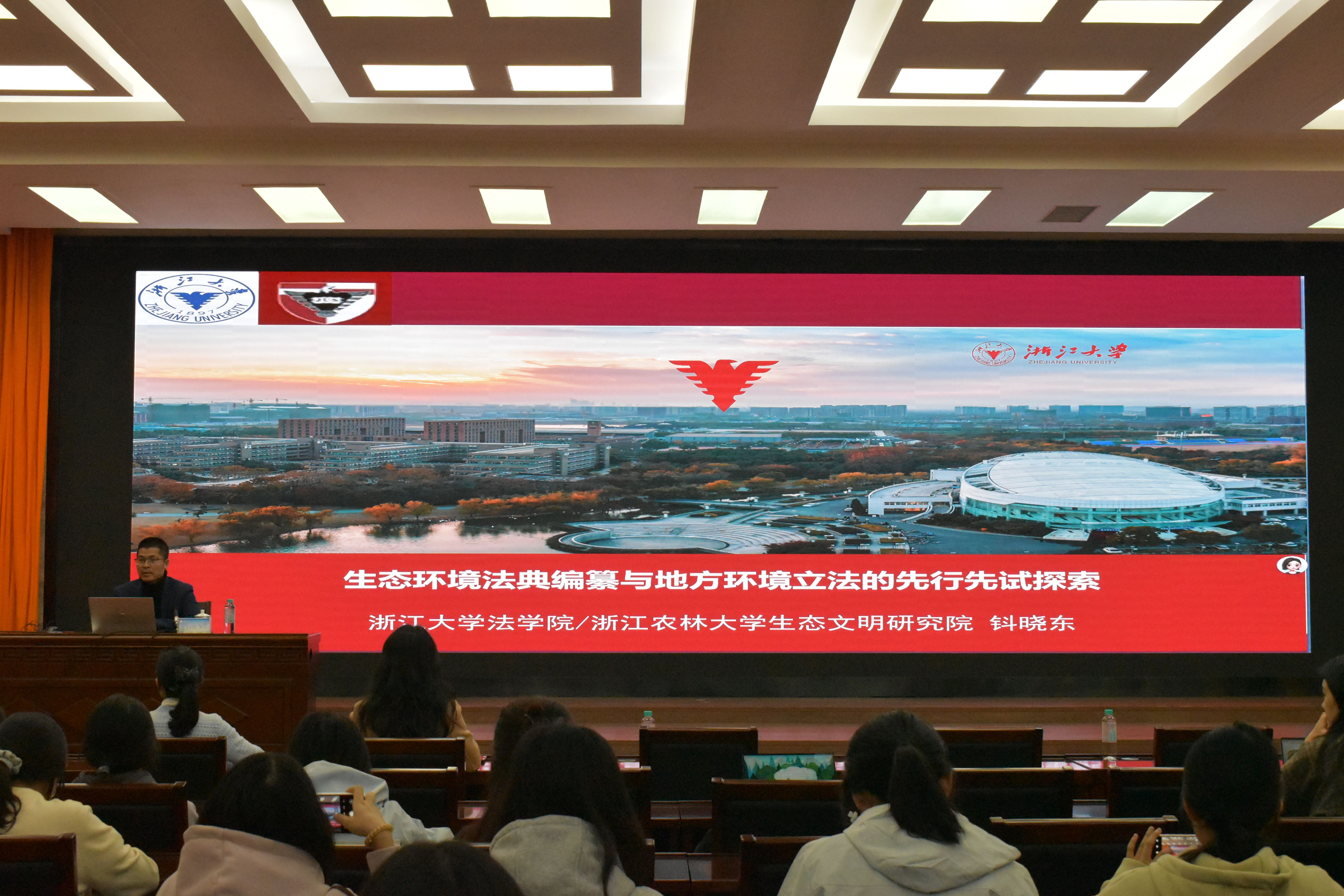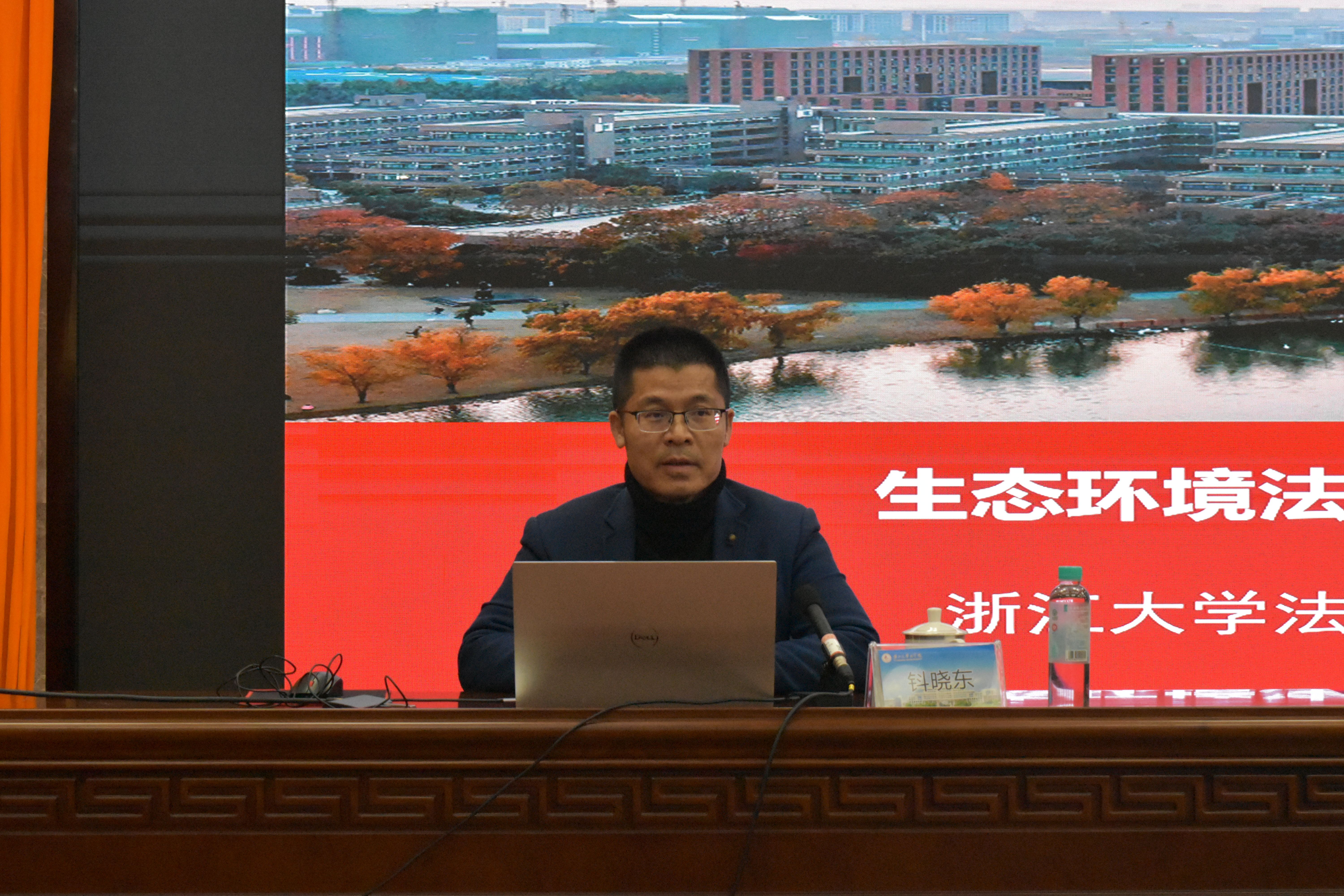为助力法学学子精准把握生态环境法治前沿动态,拓宽学术研究与职业发展视野,应公司邀请,浙江大学博士生导师钭晓东教授于11月19日晚在君武馆玉林厅为公司师生作“承典启新:生态文明法治先行探索与生态环境法典编纂进阶”主题讲座。9728太阳集团经理许光耀等领导、教师代表与全体学子共同参会,讲座由副经理熊超主持。