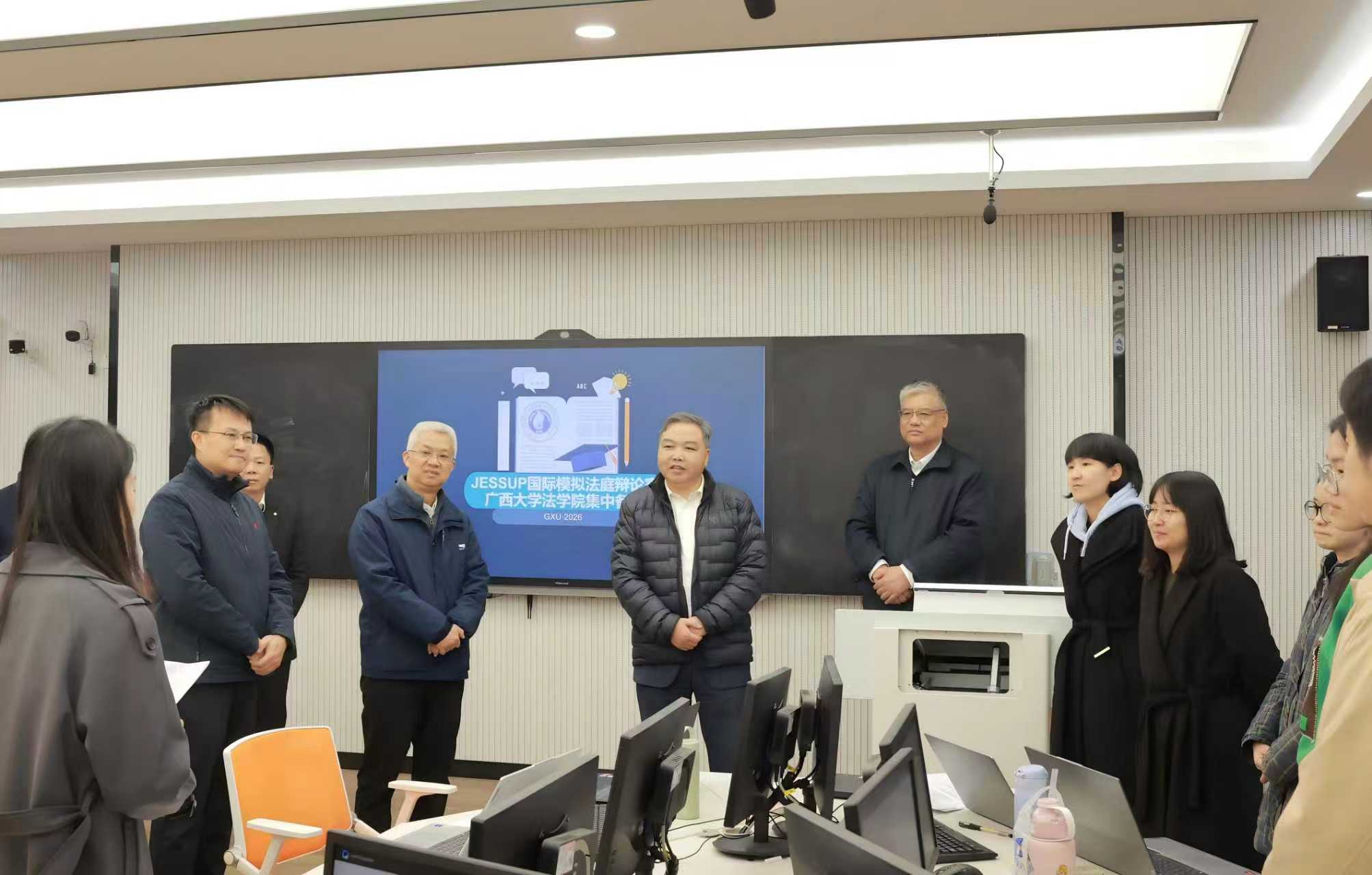 会前,肖建庄一行在公司领导班子陪同下来到法学实验实训中心,与正在备战国际法模拟法庭竞赛的员工们亲切交流,详细了解实验室设施配置与环境情况,并为科研教学保障工作提出指导意见。