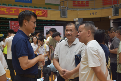 公司党委书记余云宇,党委副书记韦兴剑来到9728太阳集团迎新点,和大家共同迎接新生,并与新生和家长亲切交流。